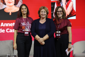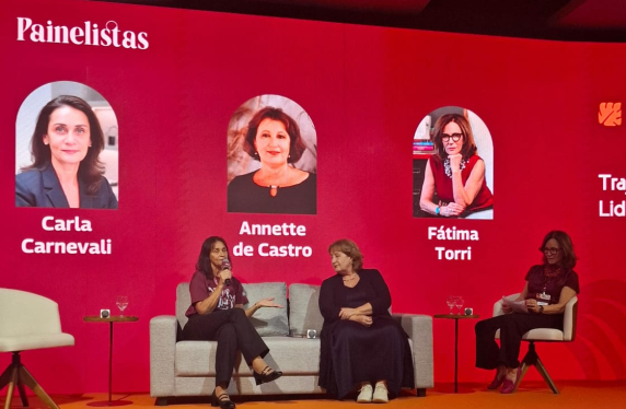 Carla integrou o painel “Trajetórias que Inspiram: Liderança, Coragem e Impacto”, ao lado da empresária e líder do Grupo Mulheres do Brasil, Annette de Castro, e da jornalista e empresária Fátima Torri. O debate destacou histórias de liderança, desafios superados e iniciativas que impulsionam a presença feminina em posições de destaque.